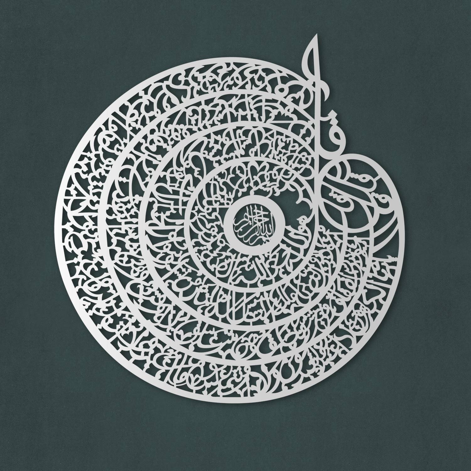 Introducing our Islamic Wall Art set, featuring four distinct pieces embellished with Arabic calligraphy from Surah al Kafiroon, Surah al Falaq, Surah al Ikhlas, and Surah al Nas. Skillfully crafted with advanced metalwork, these artworks merge modern aesthetics with traditional charm. Made from premium quality imported acrylic sheet.