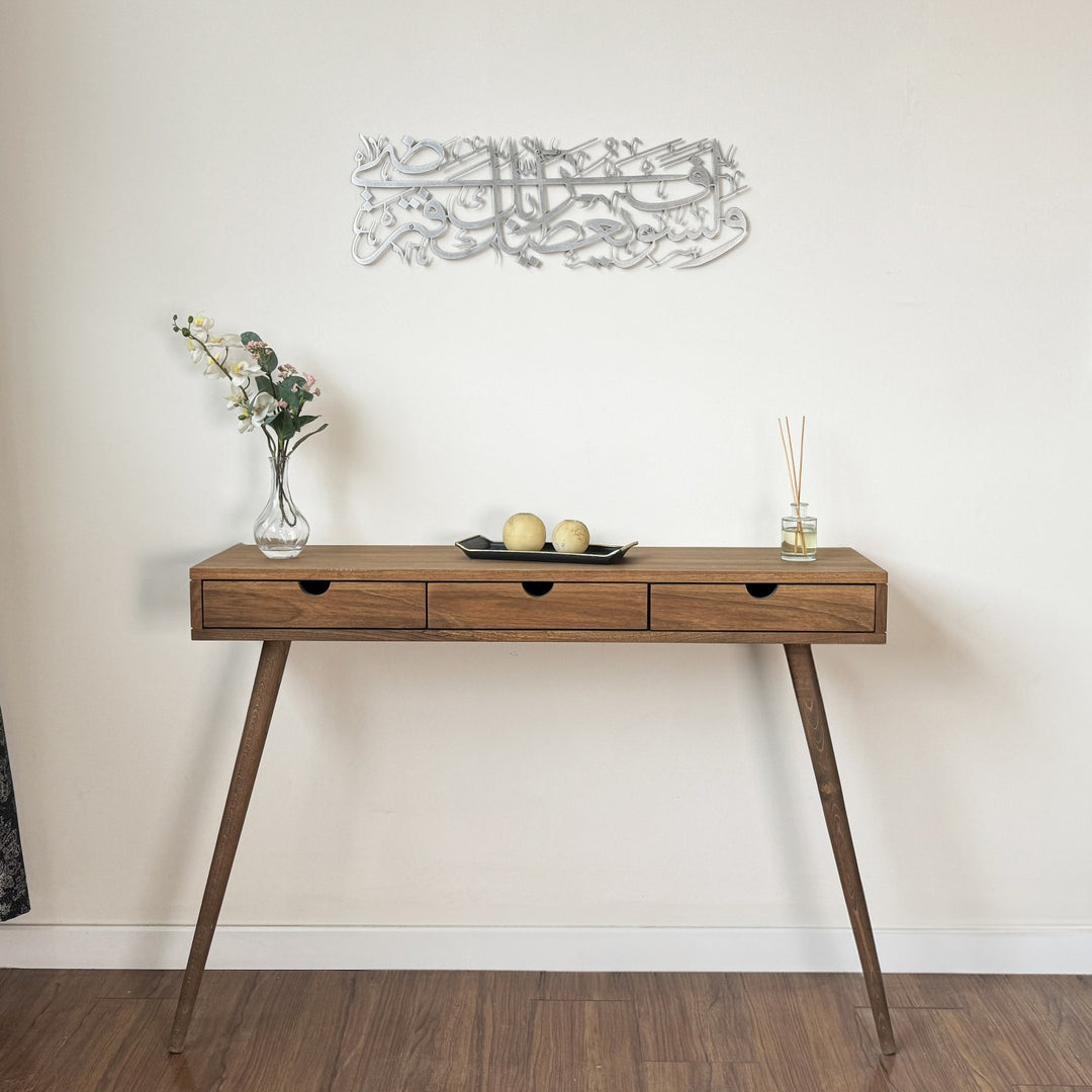 This Quran wall art not only decorates your space but whispers a message of hope and reassurance, captured in elegant Arabic calligraphy. Ideal for bringing a touch of spiritual warmth to your living room and ideal for Ramadan decor. It serves as a daily reminder of the Almighty's unwavering support. Crafted with care on metal, this Islamic wall art decor blends seamlessly with any decor, making it a perfect Islamic gift for loved ones or a special addition to your Ramadan door decor. Let this profound verse be a beacon of light and comfort in your home, embodying the depth of Islamic heritage.
