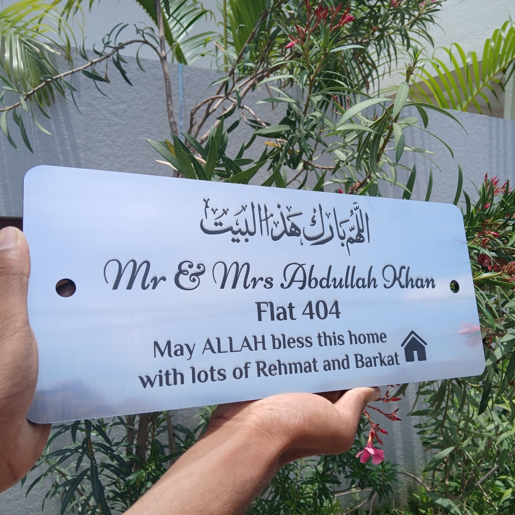 This customizable House Nameplate is a great addition to any home. With its unique design and easy installation, it adds a touch of elegance to any house. Made with high quality materials and affordable for all, it is the perfect way to showcase your house's name. Available for delivery all over UAE.